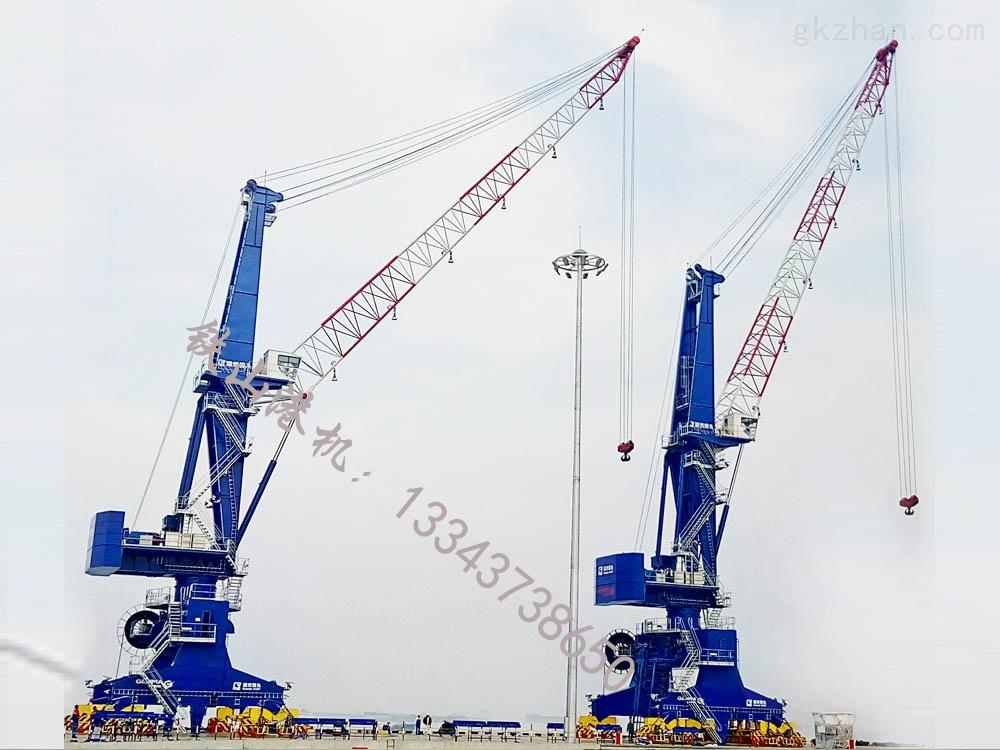 來源:河南省鐵山集團港機事業(yè)部江西南昌門座式起重機廠家門座起重機的典型型式分類及用途(1)按臂架結構型式,門座起重機可分為剛性拉桿式組合臂架式門座起重機、柔性拉索式組合臂架式門座起重機和單臂架式門座起重機,(2)按門架結構型式,門座起重機可分為圓筒式門座起重機、交叉式門座起重機、撐桿式門座起重機和桁架式門座起重機。(3)按回轉支承類型,門座起重機可分為轉盤式回轉支承門座起重機和柱式回轉支承門座起重機。(4)按用途和使用場合,門座起重機可分為港口門座起重機、船廠門座起重機和水利電力門座起重機。機構部分。機構部分包括起升機構、變幅機構、回轉機構和運行機構。變幅機構是工作性變幅機構,能在帶載情況下改變幅度,因此具有載重升降補償裝置和臂架自重平衡系統(tǒng)。載重升降補償裝置使載荷在變幅過程中沿水平線或近似水平線的軌跡移動,臂架自重平衡系統(tǒng)在變幅時使臂架系統(tǒng)的重心高度保持不變或基本不變。回轉機構由回轉支承裝置和回轉驅動裝置組成?;剞D支承裝置有柱式和轉盤式。運行機構由運行支承裝置、運行驅動裝置和運行安全裝置組成。運行支承裝置包括均衡梁、車輪、銷軸等。運行驅動裝置包括電動機、制動器、減速裝置等。